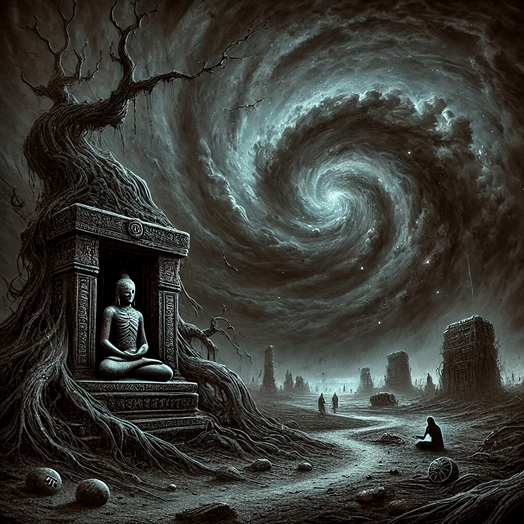 We detach from the spiritual truths and our divine consciousness within the Darkness. The Vishnu Purana describes such a world within which “spiritual knowledge is lost, and men cease to perform sacred rites” (Book IV, Ch. 24). In the age of Kali Yuga, tamas dominate; it symbolizes spiritual darkness and delusion. “Tamas, born of ignorance, deludes all embodied beings. It binds through heedlessness, laziness, and sleep” (Bhagavad Gita 14.8). Thus, darkness signifies ignoring one’s true spiritual nature. When people forget their divine origin, they become trapped in material pursuits, laziness, and delusion. The internal darkness thus mirrors the external chaos of the Kali Yuga, where a lack of spiritual knowledge pervades society. Ultimately, the darkness of the spiritual is an internal manifestation of the Kali Yuga within us.