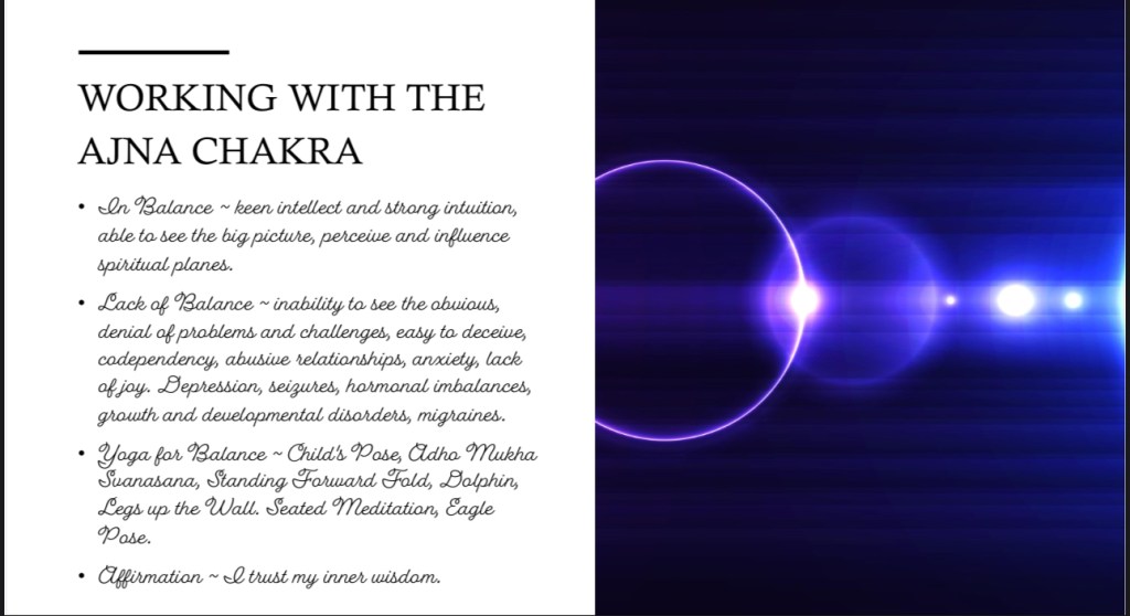 They describe how consciousness moves through the body, from survival and sensation, to will, love, expression, perception, and ultimately awareness itself.